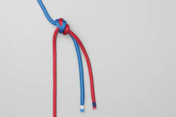 - Tighten and dress the knot. Pull each of the four strands (the two standing lines and the two tails) individually to ensure the knot is snug and the ropes are not crossing awkwardly inside the knot.