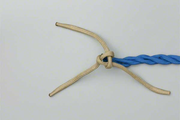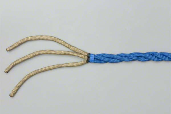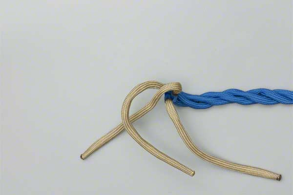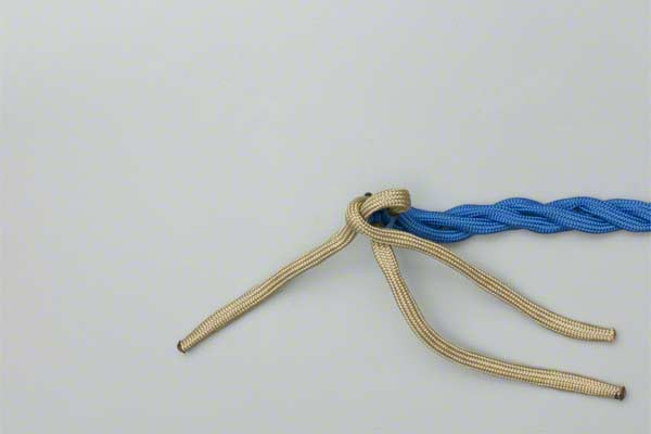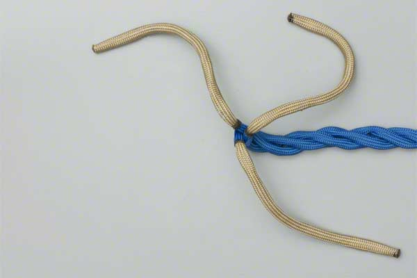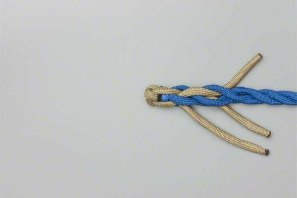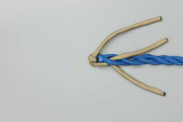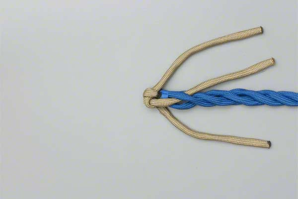 - Form a Crown Knot by passing each strand over its neighbor and then tighten the knot.