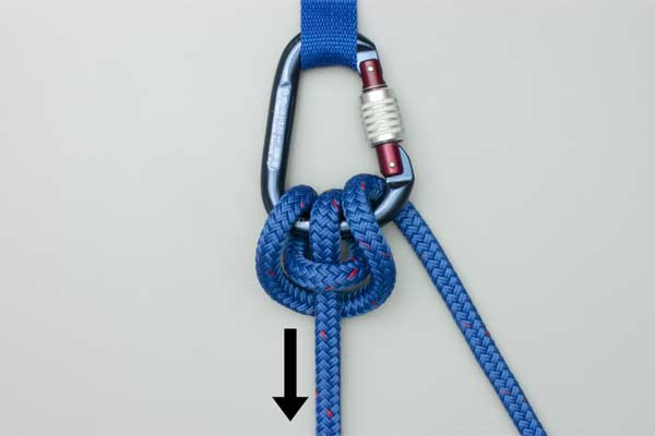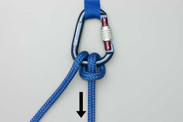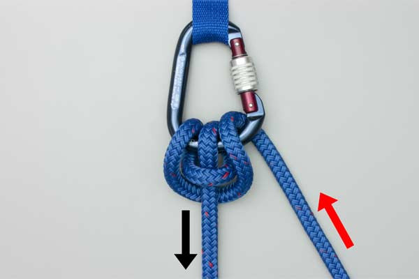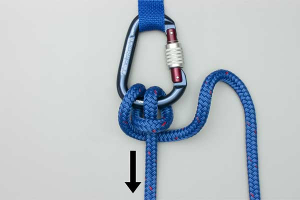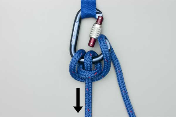 - Tuck a bight of the tail through the gate into the carabiner.