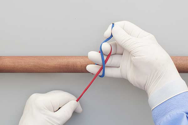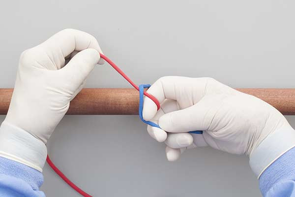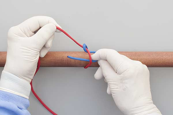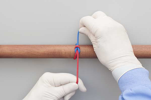 The defining characteristic of the Surgical Tie – One Hand is its symmetry. Because it results in a Square Knot, it is easy to inspect visually. If the "ears" of the knot do not sit flush against each other, the knot has been tied incorrectly, likely resulting in a "Granny Knot," which is notorious for slipping under load.