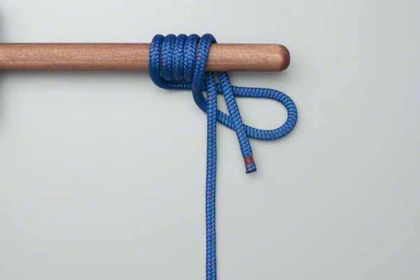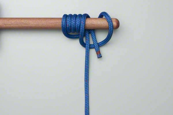 - Leave a loop hanging and pass the end of the rope back over the pole alongside the standing end.
