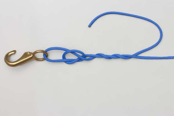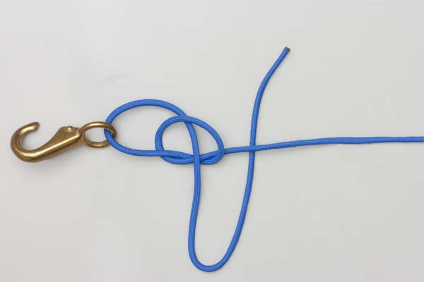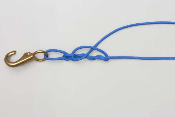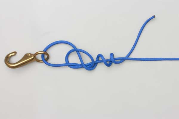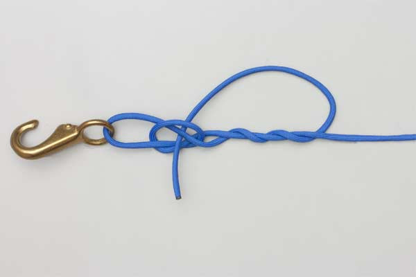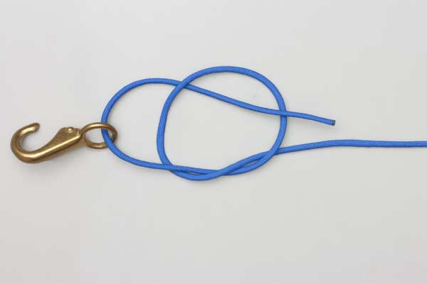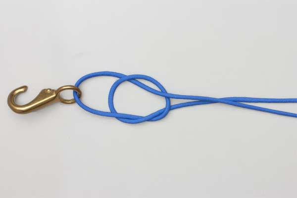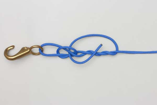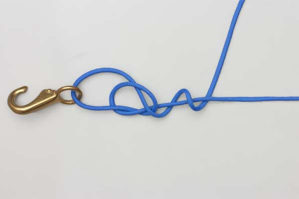 - Pass the end back through the overhand knot and then through the loop just formed.