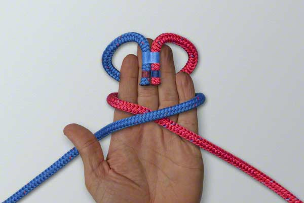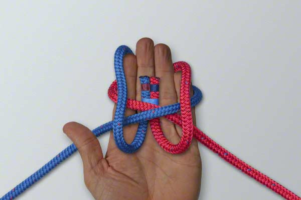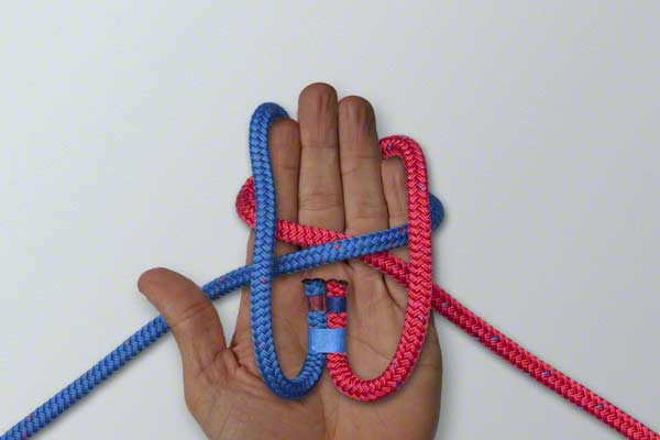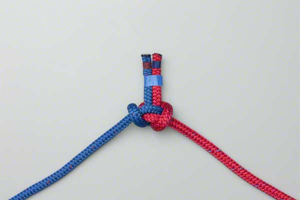 - Fold the join back and then up under the other ropes.