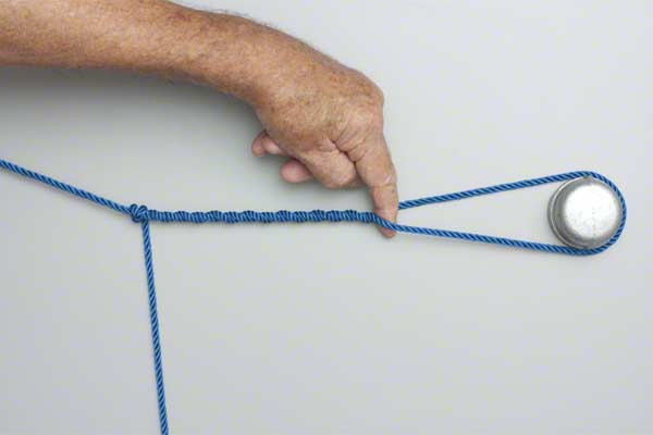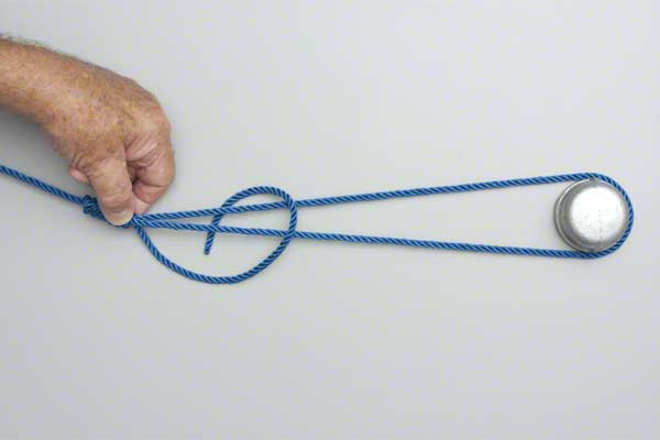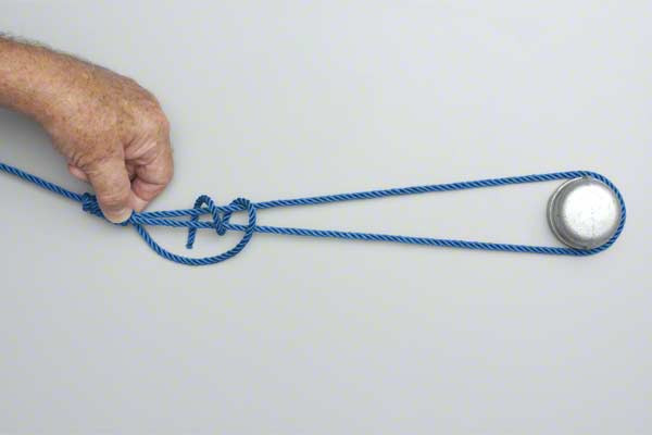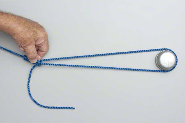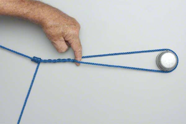 - Hold the knot and secure it with a Half Hitch and multi-loop hitch (tuck tag end between the lines).