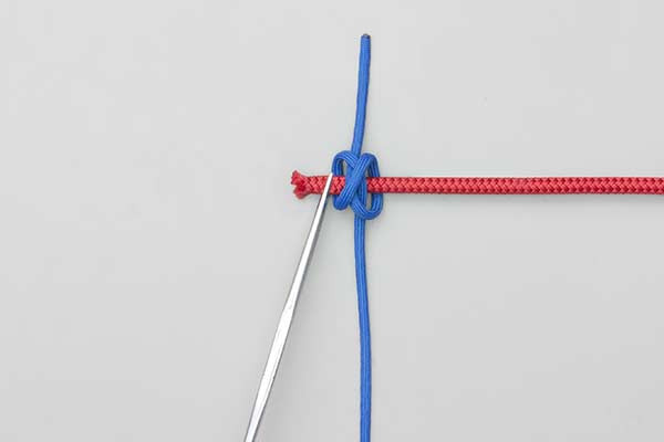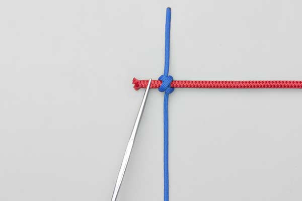 The use of forceps is a master-class technique in precision. By passing the tool through the center of the knot, you create a "guide path." This ensures that the tension remains on the cordage while you are positioning it. In an outdoor survival or gear repair scenario, this prevents the materials from shifting while you are trying to secure them.