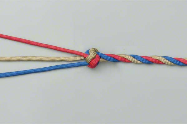 The most frequent error is tightening one strand more than the others. This causes the knot to "capsize" or look lopsided. You must tighten the strands incrementally—pull a little on Gold, then Red, then Blue, and repeat until the knot is snug against the standing part of the rope.