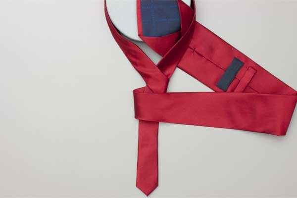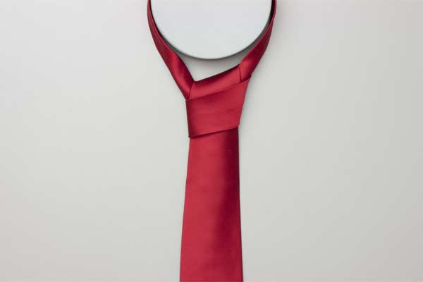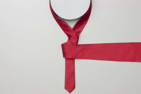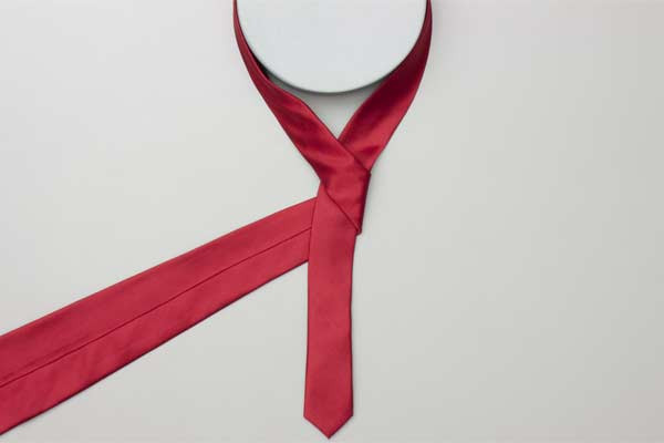 - Pull the long end to tighten the knot, then the short end to make snug against the neck.