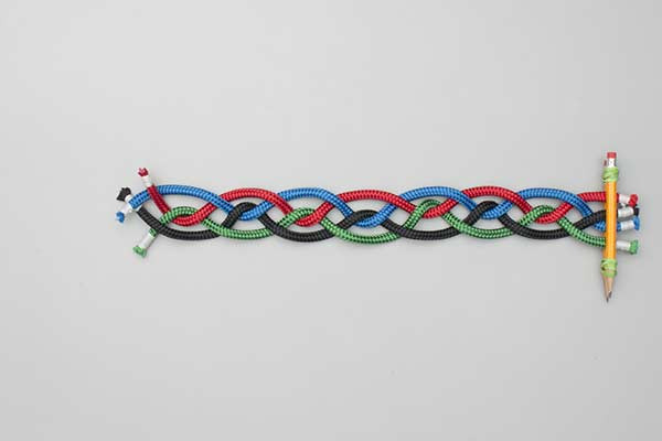 - Continue to reach the desired length. Maintain the "two center, one outer" cadence until the sinnet is complete.