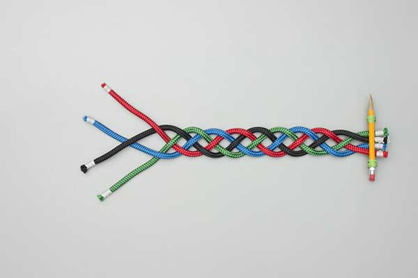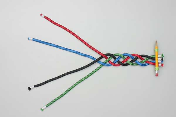 - If necessary rotate each strand to keep the sinnet lying flat. This prevents the cordage from developing internal torque, which can cause the finished braid to curl.