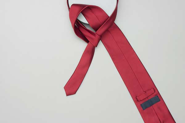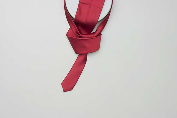 - Pull the long end to tighten the knot, then the short end to make snug against the neck.