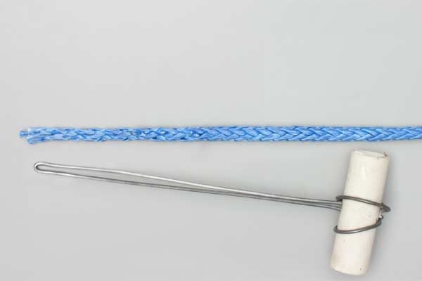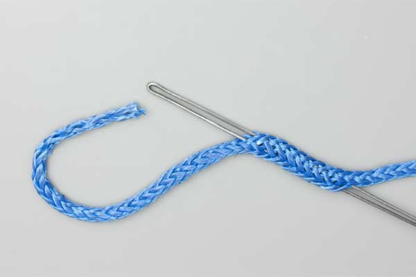 - Pass the splicing tool up the hollow core of the rope.