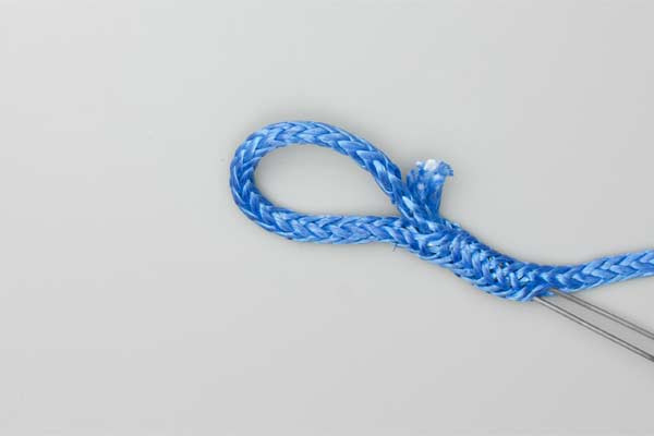 - Tuck the tapered tail into the tool and pull it through the rope.