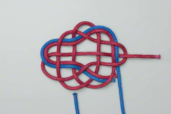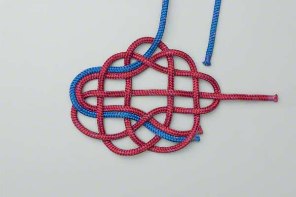 - Weave the two outer loops across the center using a strict over and under sequence. Take the outer edges of the left and right loops and bring them toward the middle, interlacing them through the center loop. It is vital to maintain the over-under pattern to ensure the knot remains locked.