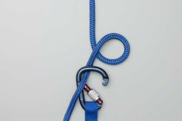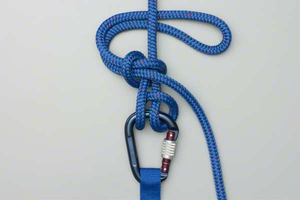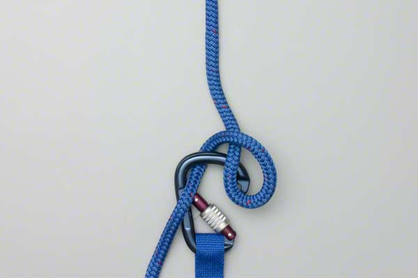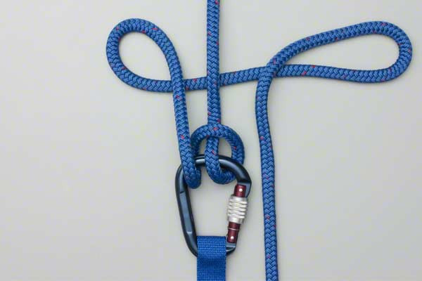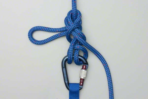 - Create two loops and then, around the climbing rope, tie a slip knot leaving a long loop.