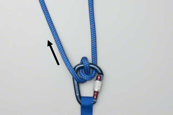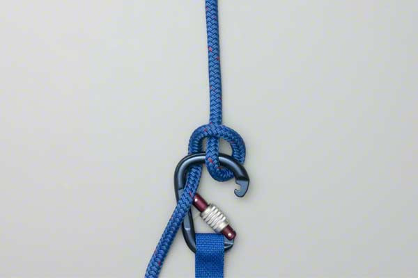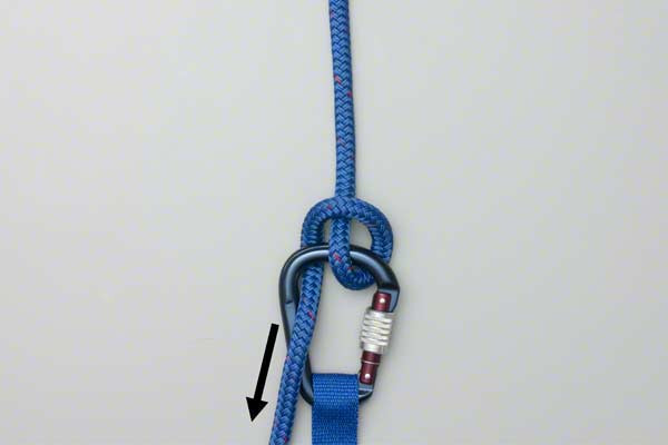 - Twist the rope above into a loop and hook it onto the carabiner to take the load.
