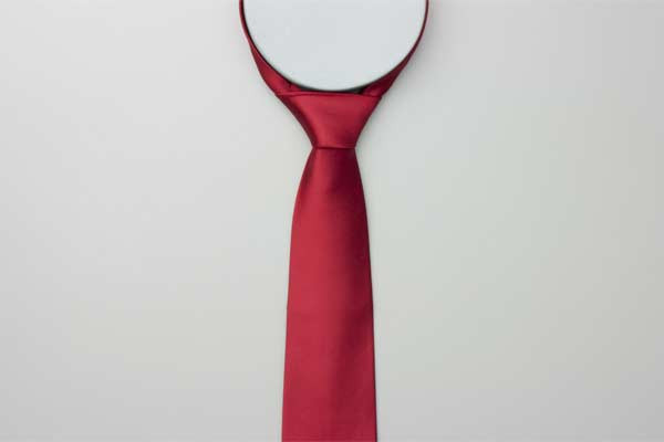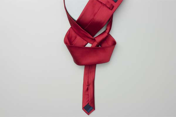 - Pull the long end to tighten the knot, then the short end to make snug against the neck.