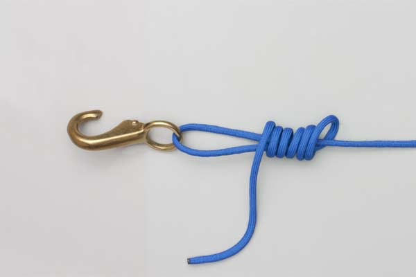 - Pass the end between the lines near the eye and then back through the loop parallel to the line. Lubricate, tighten carefully so that the turns don’t overlap each other, and trim the end.