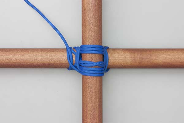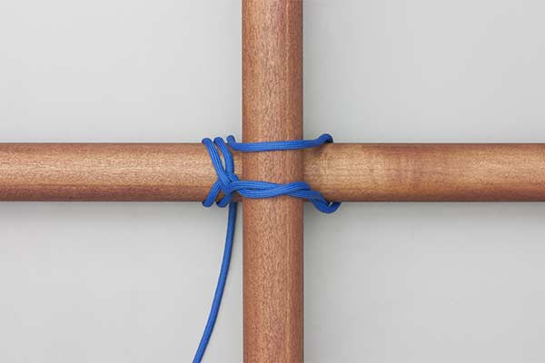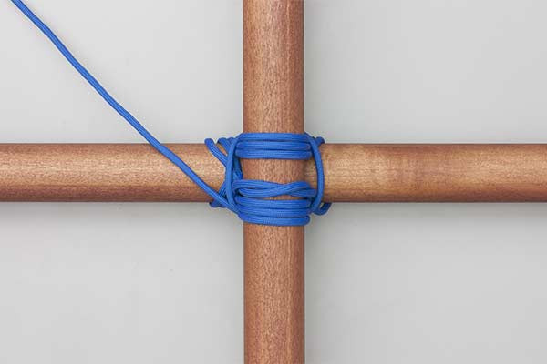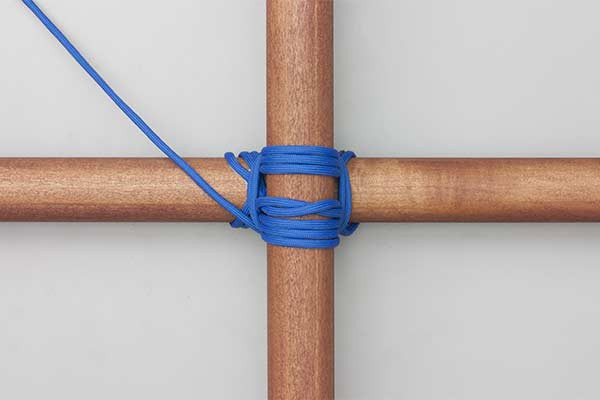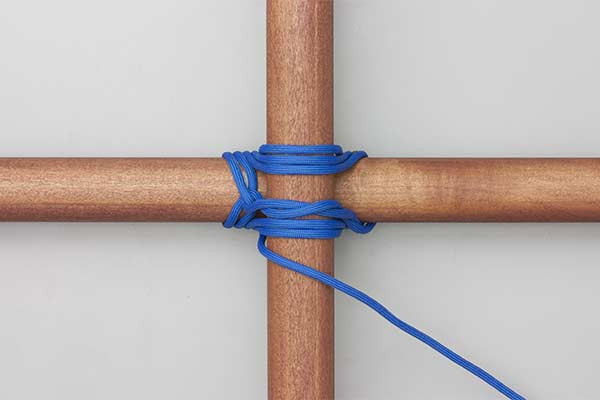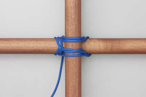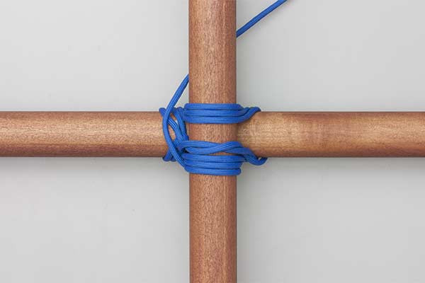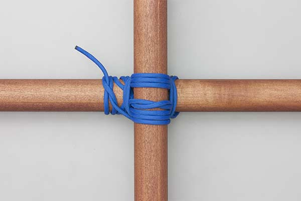 - Tighten the lashing by surrounding it with three or four frapping turns. These turns go between the two poles, effectively "choking" the wrapping turns. This is the most critical step for structural integrity, as it pulls the poles together with immense tension.