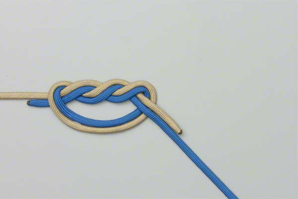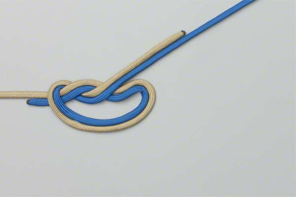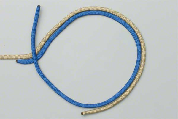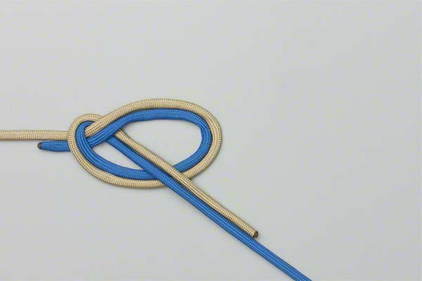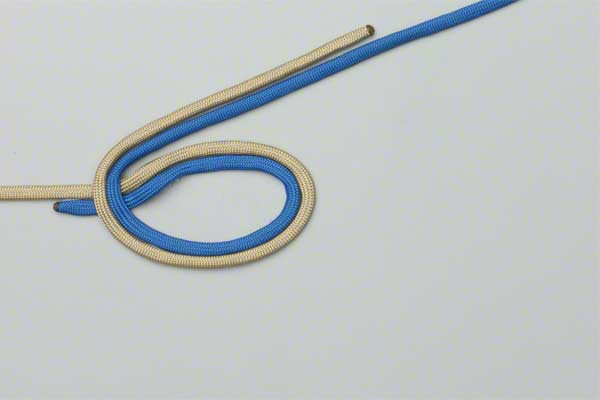 - Use both lines to form a loop with enough overlap to tie a double overhand knot.