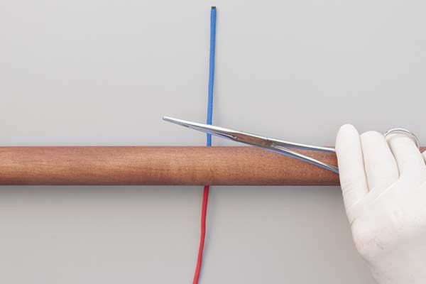 - Pick up the short end. Use the forceps to securely grab the lead.