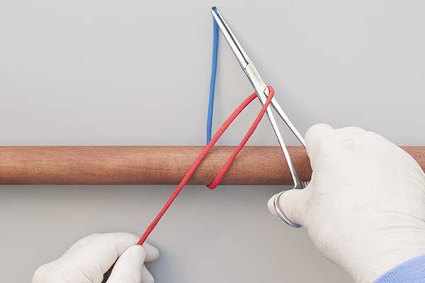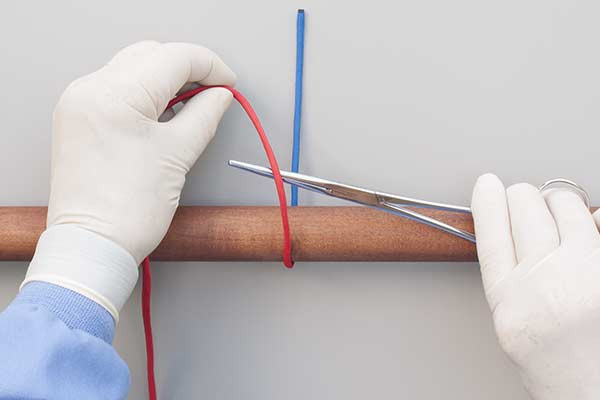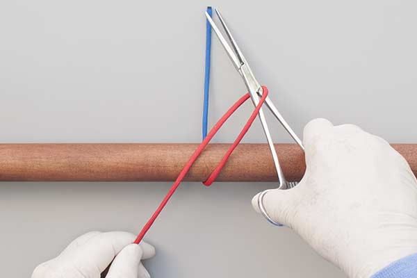 - With the short end away from you, position the forceps. Ensure you have enough length on the "long end" to wrap comfortably.