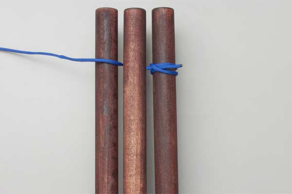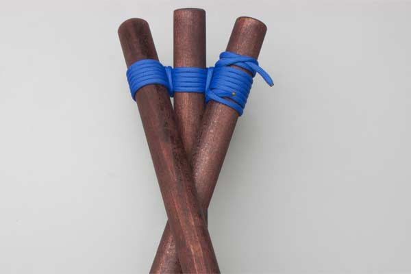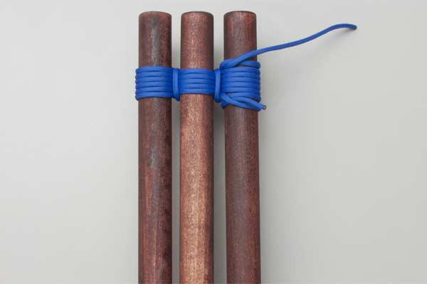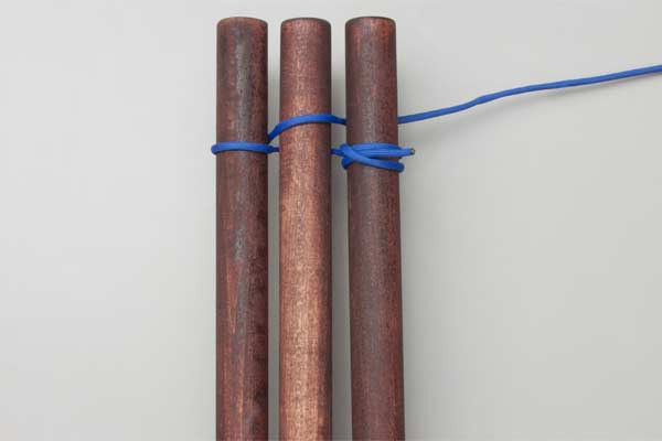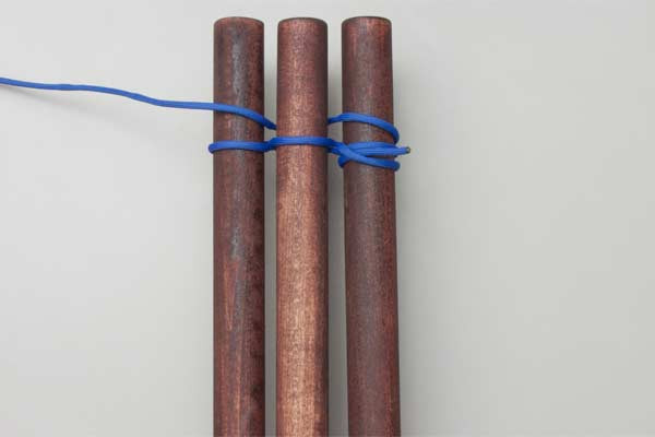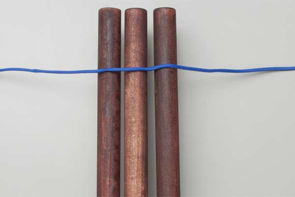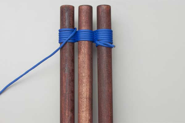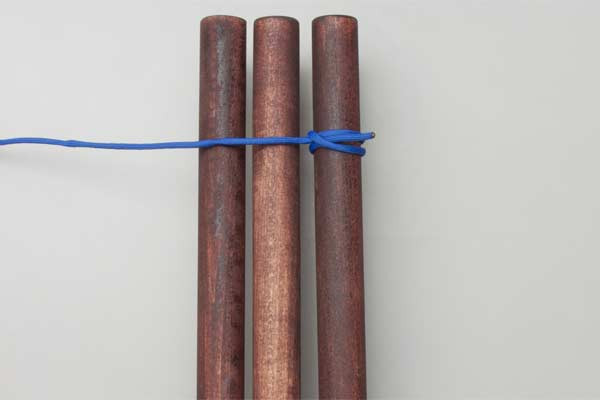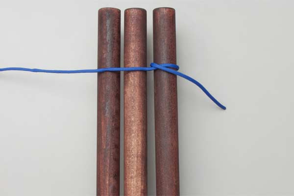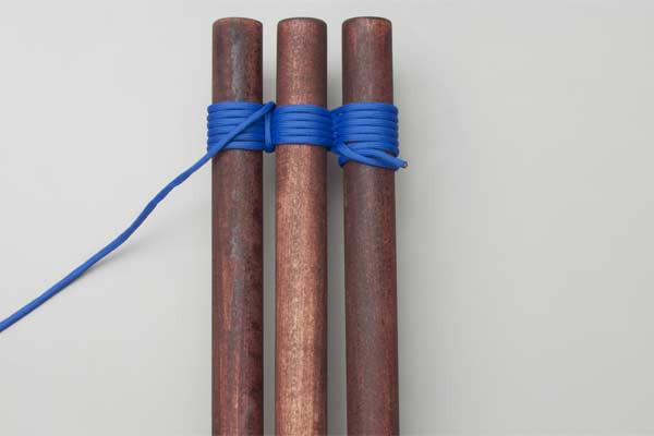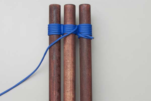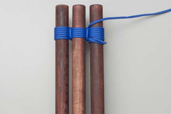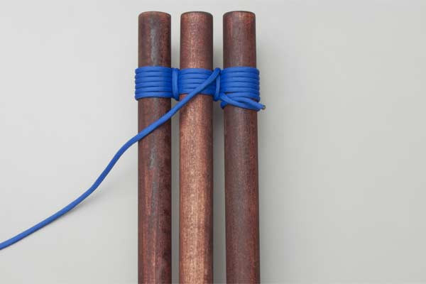 When laying the poles out to begin, if they are touching too tightly, you won’t be able to weave the rope effectively. If they are too far apart, the racking turns will have too much “play.” A gap of about half an inch is usually ideal for 3/8-inch rope.