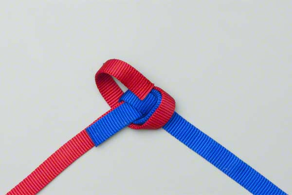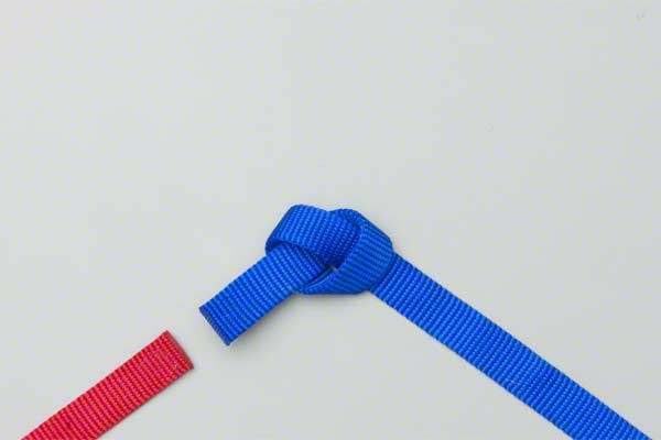 If the webbing is twisted inside the overhand structure, the pressure will not be distributed evenly. This reduces the breaking strength of the material.