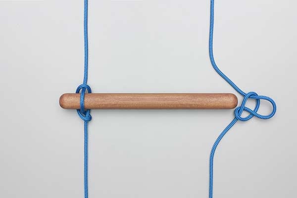 - With a second rope, tie the same knot at the other end of the pole.