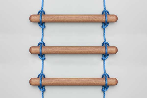 Note: When constructing a ladder, ensure that the poles (rungs) are of equal diameter and that the knots are tightened uniformly to prevent the ladder from hanging crookedly.