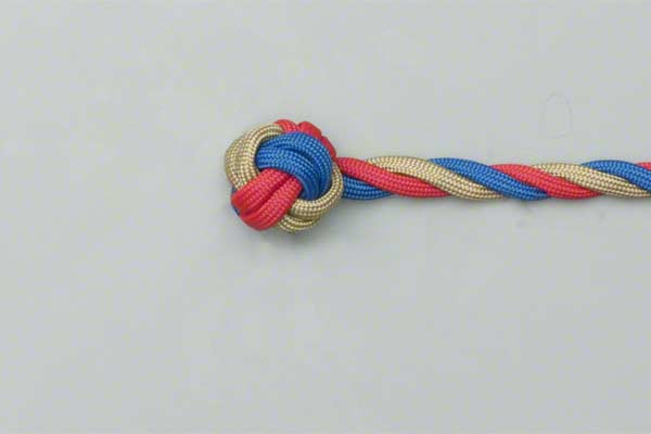 - Unravel the strands of the rope and tie a Wall knot.